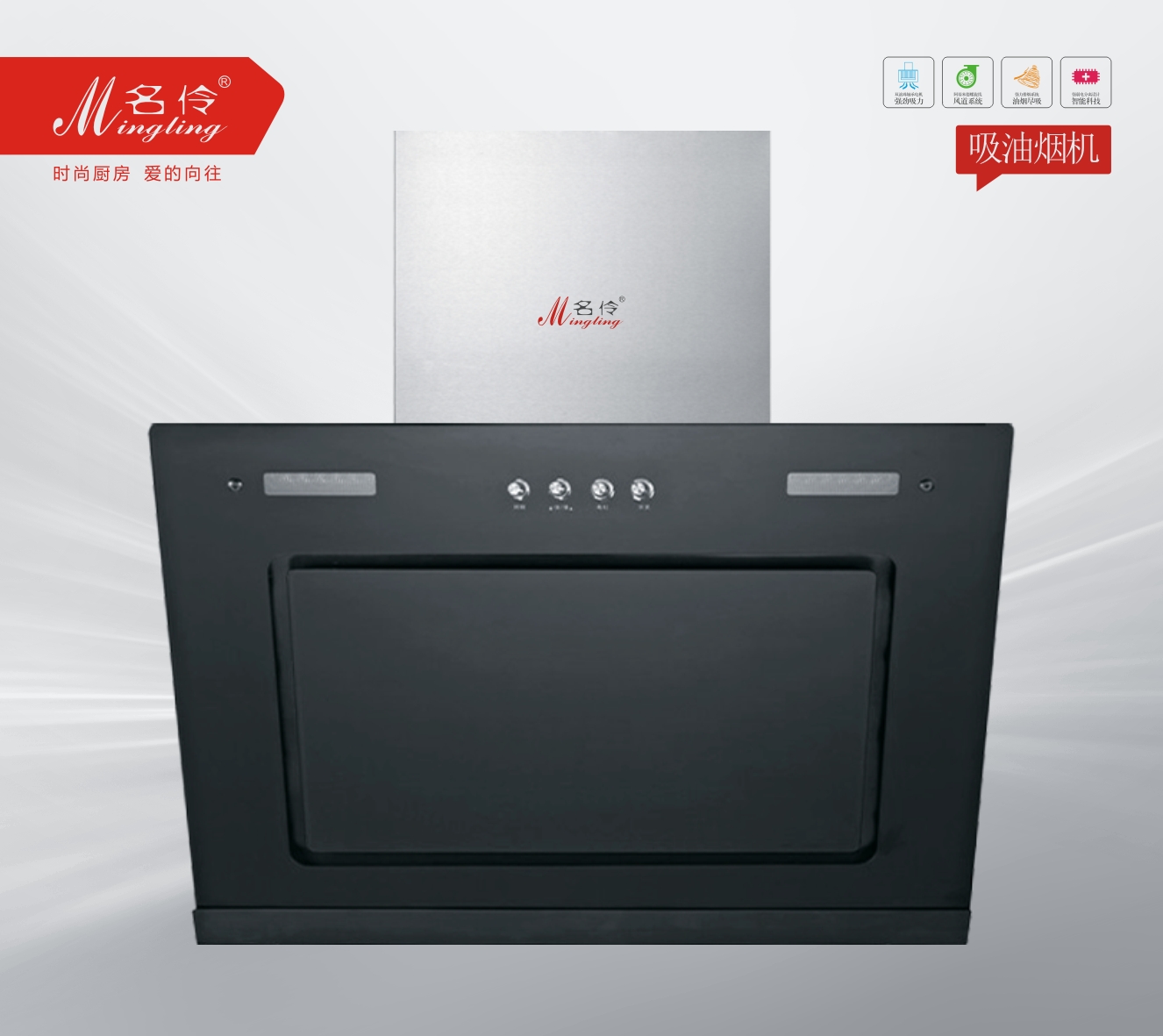 1、特有镀铬工艺按钮,创新增加斜切面设计,折射不凡魅力。 2、简约外形,抛弃传统外露式油网,让清洁更轻松。 3、烟机低位安装,动力更近,迅速彻底吸尽油烟。 4、四面立体进风设计,风压更大,如无形集烟腔牢牢锁住油烟 。 5、全新优化风道设计,双向进风,更大风量,更高效率。 6、通过平台转换,在最短时间内以最佳角度将油烟彻底分离。 7、机身材质:金属喷涂+玻璃,控制开关:机械按键开关。